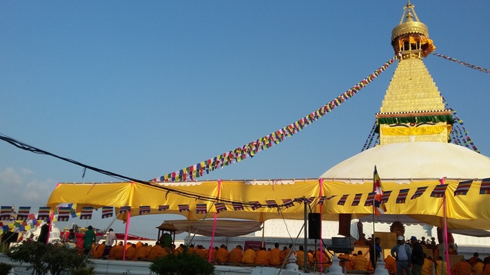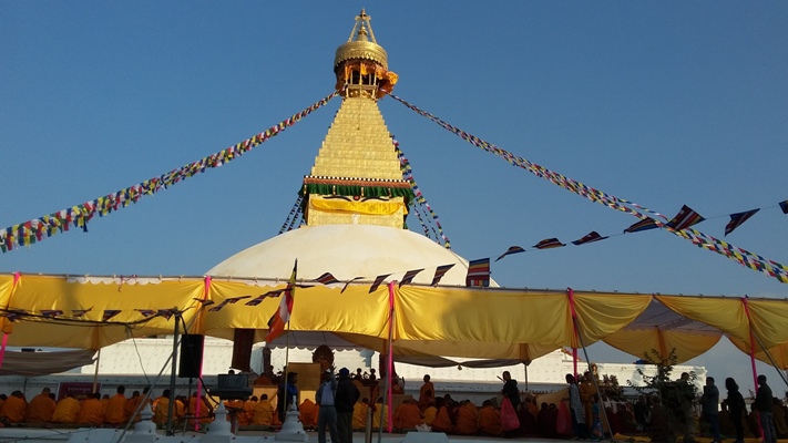 Grand Buddhist consecration ritual (Rhapne) is going on for the last couple of days in Boudha, Buddhist holy site in Kathmandu known as Boudhanath in general. Buddhist call this huge stupa, Jyalung Khasyor. Grand gurus and priest Lama communities of all Buddhist sects; Ngingmapa, Shakyapa, Kagugyapa, Ghelugpa, Theravada of both Mahayani and Hinyani groups have been performing Puja. The PM of Nepal, Prachand is scheduled to inaugurate this UNESCO world heritage site on Tuesday amidst special ceremony. Boudha stupa is the first completed important heritage site after the last year’s devastating earthquake. Renovation work here took off at spontaneous initiative of local community, devotees and the Boudha Development Committee without waiting help from the governments and other international donors. This is an exemplary and successful renovation work done finely and completed well in time at peoples’ level. A silver line in the black cloud, a piece of promising signal for other renovation and reconstruction works that is long due in the earthquake affected parts of Nepal. Also a good hope of rays for reviving Nepal’s tourism. Such a grand and elaborate rituals could be very unique attraction and rare chance for tourists visiting Nepal. Many more such Buddhist and Hindu rituals are on the pipe line in the months to come. Welcome to visit Nepal and not miss such rare chances. For more details visit # Himaland website; www.himaland.com